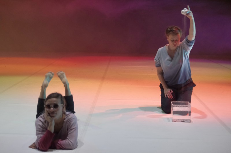 A danced duet, performed by Malgven Gerbes and Margot Dorléans unfolds a continuous choreographic framework opening up spaces and optical games, and is joined by a group of children between 6 and 10 years old, who have previously taken parts in rehearsals and dance discovery sessions.